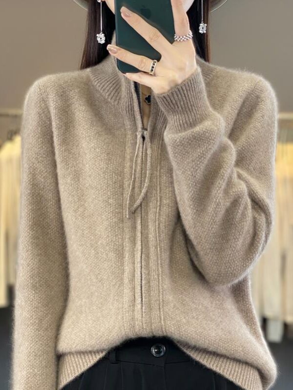 Wysokiej Jakości Wełniany Kardigan Damski Stojący Kołnierz Dwukierunkowy Zamek Błyskawiczny Sweter Kaszmirowy Jesienny i Zimowy Sweter Kurtka XXXL