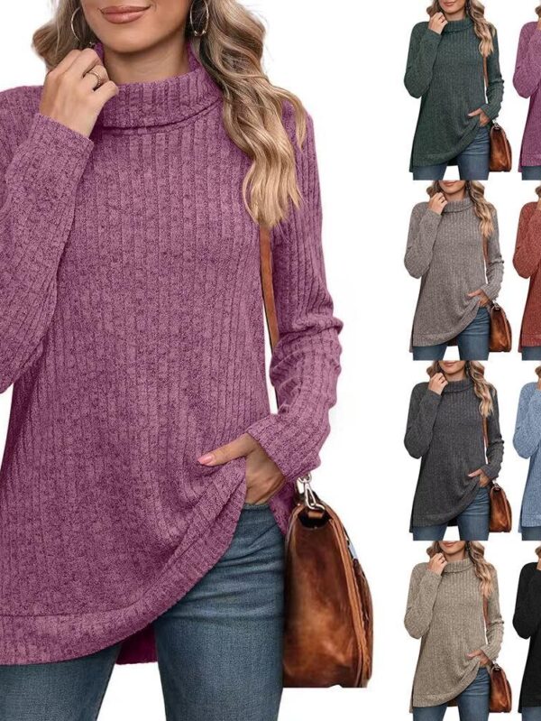 Women's Top Turtleneck Sweaters Side Slit Solid Color Pullovers Autumn and Winter Long Sleeve T-shirt Knitted Sweaters S czarny
