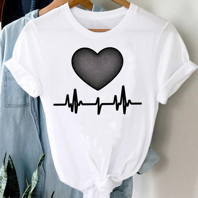 (Asian Size) trend love heart 90s Clothing Casual Flower Women Tee Top Fashion Short Sleeve T Shirt Print Lady Female Graphic T-shirts S