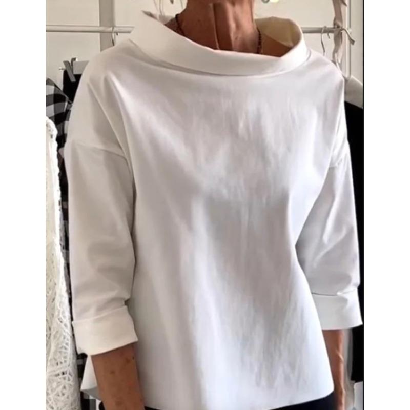 Autumn Style Sweatshirt Women’s Long Sleeved Semi High Neck Women’s Pullovers White S kolor szary