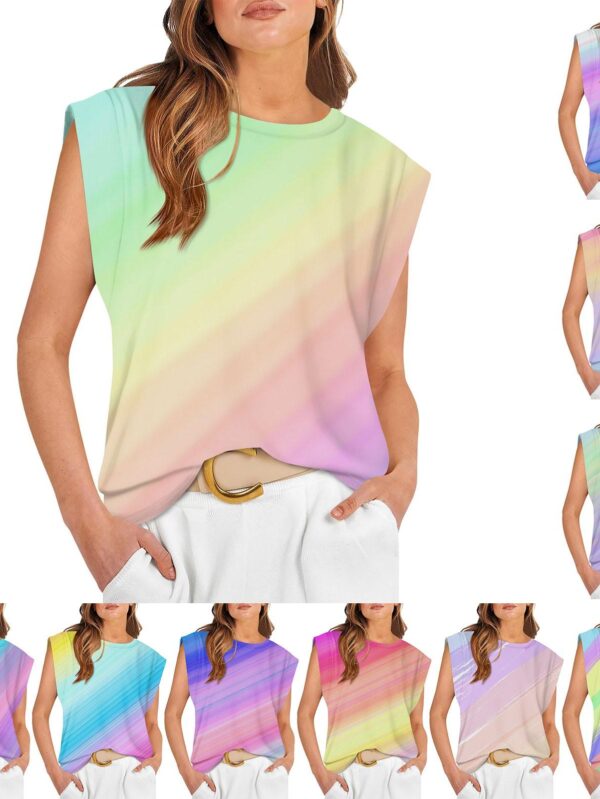 Women's Casual Comfort Loose Gradient Printed Cap Sleeve Top L beżowy