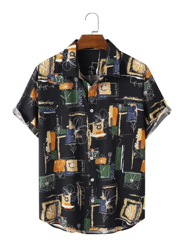 Summer fashion printed trendy short sleeved shirt with lapel pocket for men S czarny