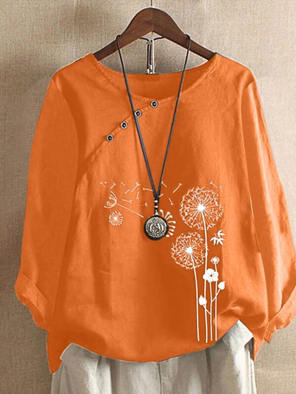 Plus rozmiar 5XL bluzka z kwiatowym nadrukiem damska z długim rękawem bawełniana lniana koszula wiosna jesień damski top na co dzień bluzka z guzikami S niebieski