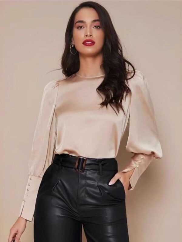 Koszula z długim rękawem z poliestru damska wiosna jesień rękawy typu latarnia satynowa koszula top bluzki i koszule XS morelowy