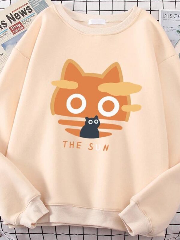 The Sun Orange Cat Fun Cute Print Cartoons Hoody Loose Clothing Autumn Winter Fleece Hoodies Comfortable Sweatshirt Pullovers & Long Sleeves Women’s S czarny