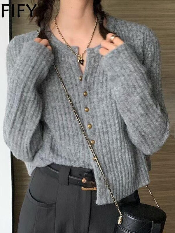 DAFIFY Moda damska Casual Jesień Zima Jednolity kolor Nadruk Długi rękaw O-Neck Swetry One size kolor szary