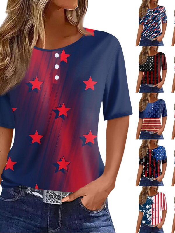 Women's T Shirt Tee Independence Day Print Button Short Sleeve Daily Weekend Fashion Basic Round Neck Regular Top XXXL niebieski