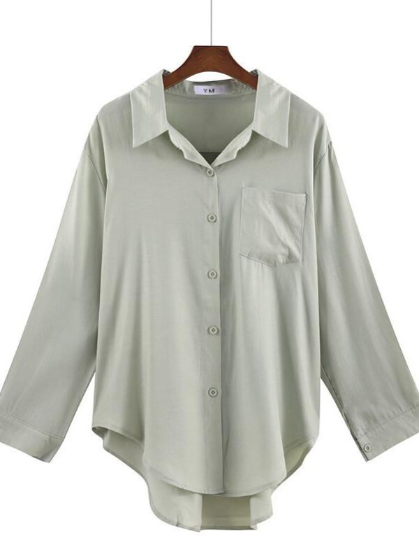 Wiosna jesień koreański kołnierzyk polo z długim rękawem luźne bluzki kardigan biurowy koszula topy damskie S