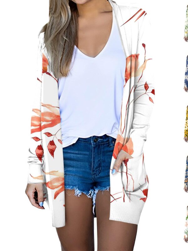 Damska moda swobodna kwiatowy nadruk długi rękaw midi kardigan kurtka topy M khaki