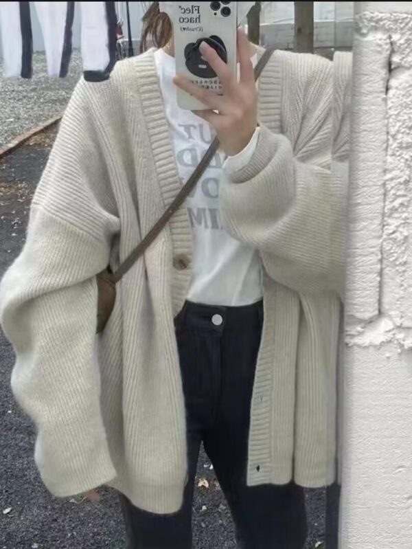 Sweter rozpinany damski 2023 wiosenny sweter dziergany damski solidny miękki kleisty luźna odzież wierzchnia z leniwym swetrem z dekoltem w serek One Size czarny