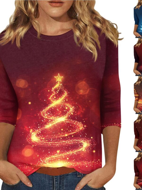 Women's O-Neck 3/4 Sleeve Christmas Print Top S niebieski