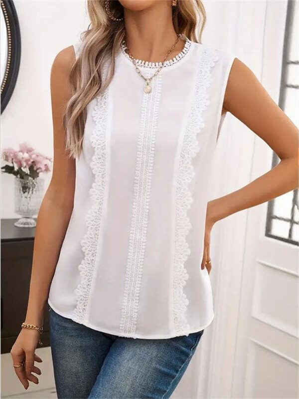 Sleeveless Lace Decorative Vest Top for Women Solid Color T-shirt for Women S biały