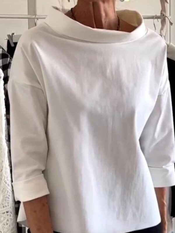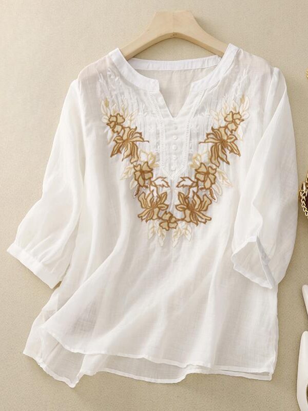 Cotton Linen Women's Cotton Silk Mid Sleeves Three Quarter Sleeves Western Style Summer Wear Short Sleeved T-shirt M biały