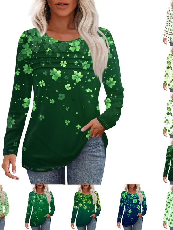 Damski luźny swobodny nadruk okrągły dekolt plisowany długi rękaw modny top Top M niebieski