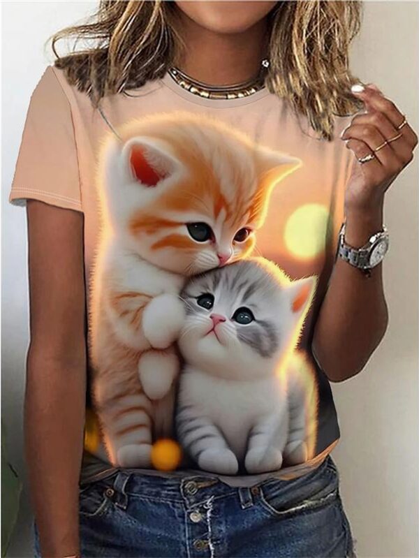 Cute Cat Pattern T Shirt For Women Animal Printed Short Sleeves Summer Fashion Crew Neck Tops Girl Tees Oversized T-Shirts S