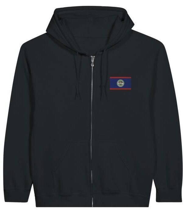Sweat à capuche à fermeture éclair - PIXELFORMA - Drapeau du Belize - Manches longues - Noir