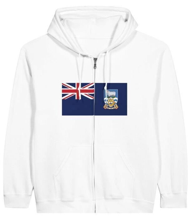 Sweat à capuche à fermeture éclair Drapeau des îles Malouines en Blanc