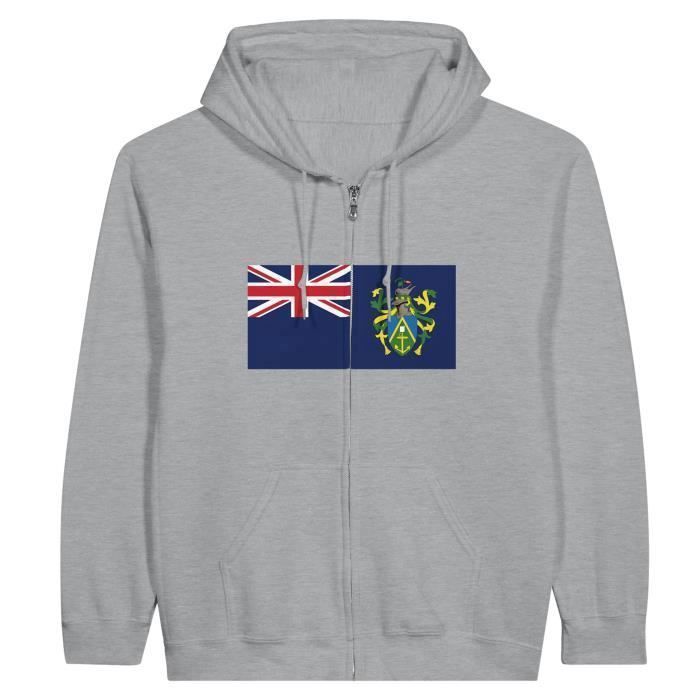 Sweat à capuche à fermeture éclair Drapeau des îles Pitcairn en Gris