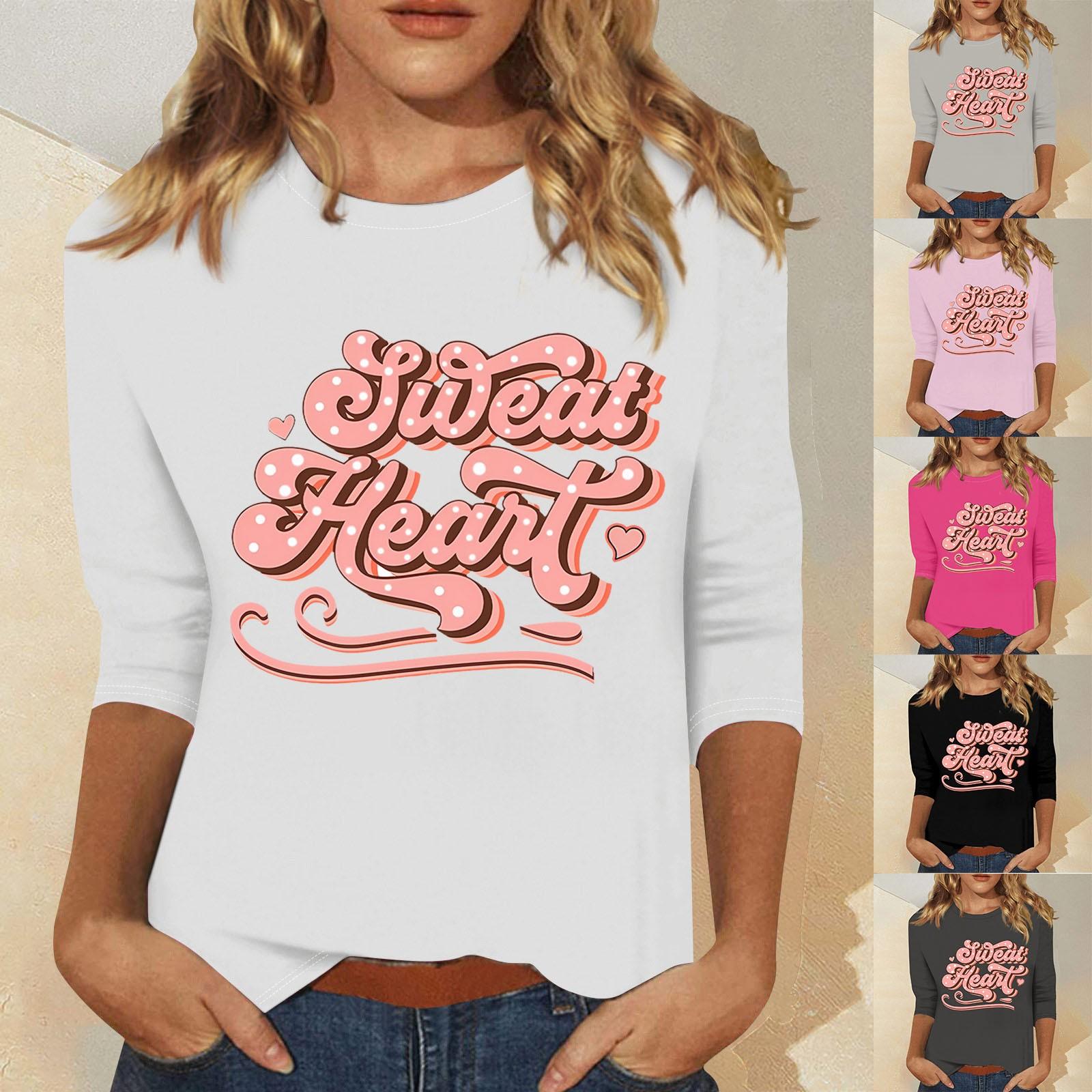 Women’s Fashion Casual Seven Sleeve Valentine’s Day Printed Pullover Top L czarny