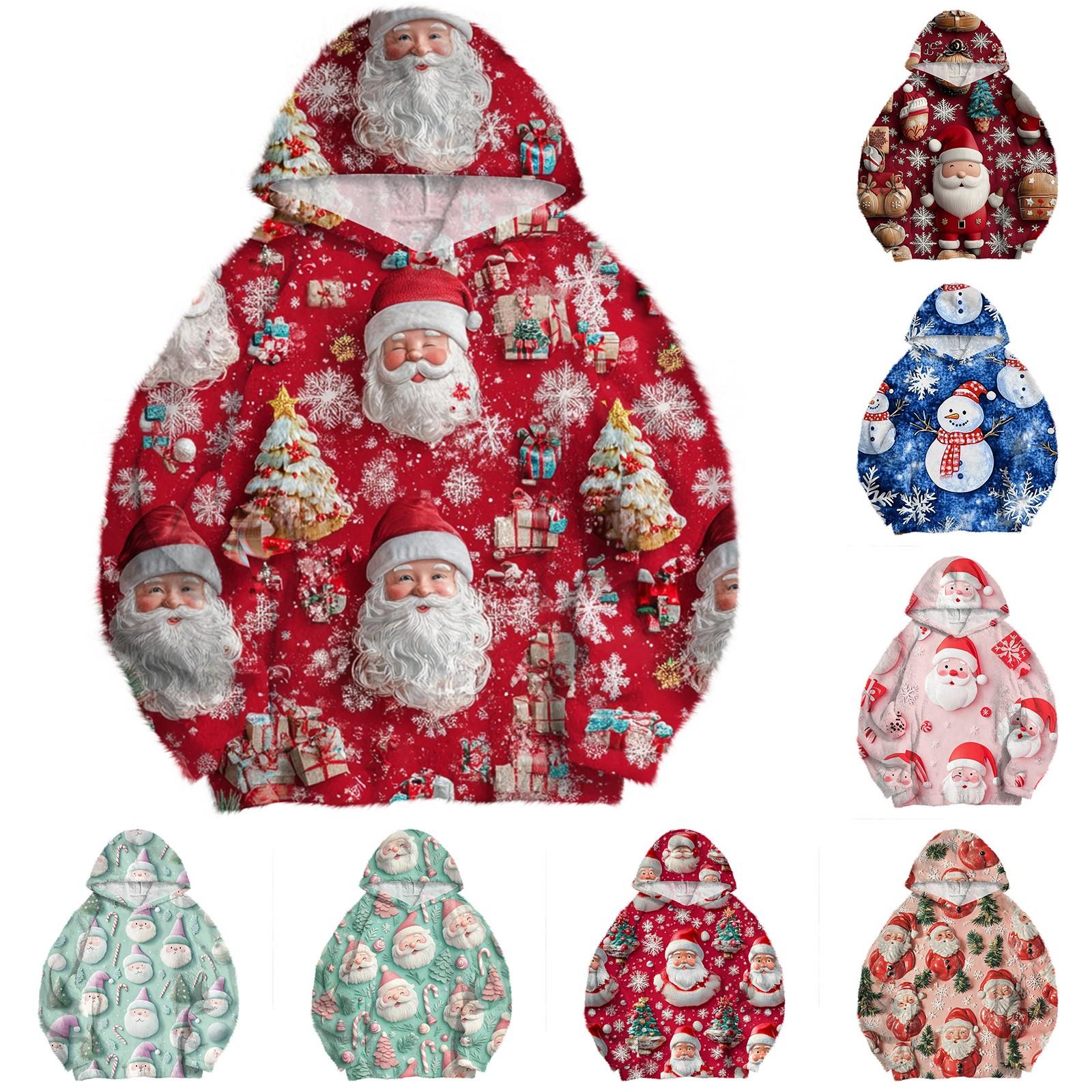 Women’s Fashion Pullover Drop Shoulder Long Sleeve Christmas Printed Hooded Sweatshirt M wino